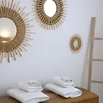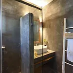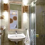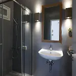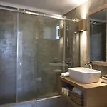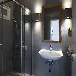 La Executive Paros Villa 5 Bedrooms Villa Beachfront Supreme Beachfront Sea dispone de un cuarto de baño con una ducha. Hay toallas de baño para la comodidad de los huéspedes.